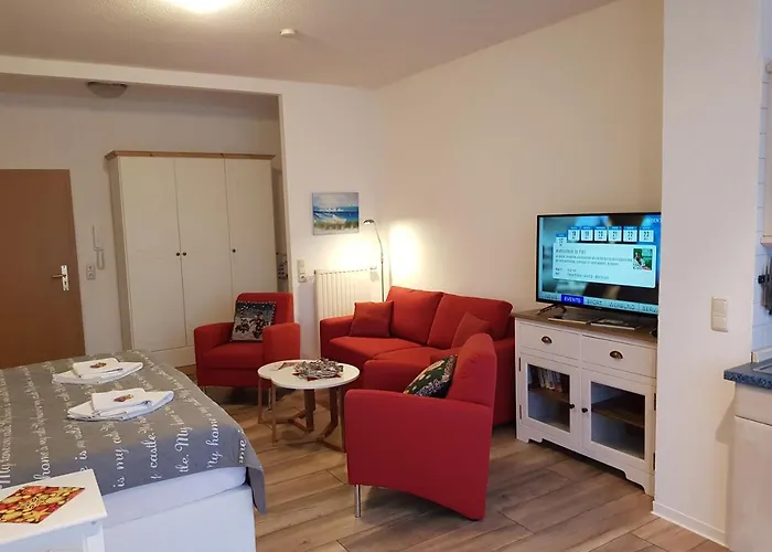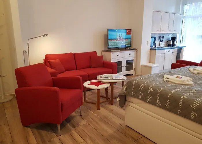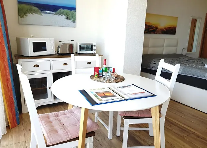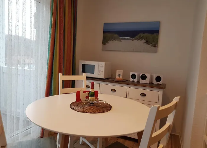 "Residenz Seeblick" Studio 14 Sellin med 1 sovrum, som ligger 700 meter från Hauptstrand, erbjuder moderna bekvämligheter som WiFi samt en parkering. Ungefär 25 minuters gångavstånd från den 40 m² stora lägenheten hittar du Rügensche Kleinbahn.